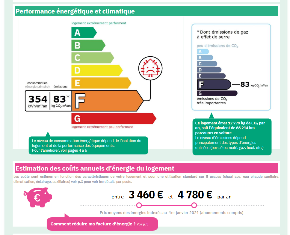 Consommations énergétiques - F - 354 kWh/m²/an.
